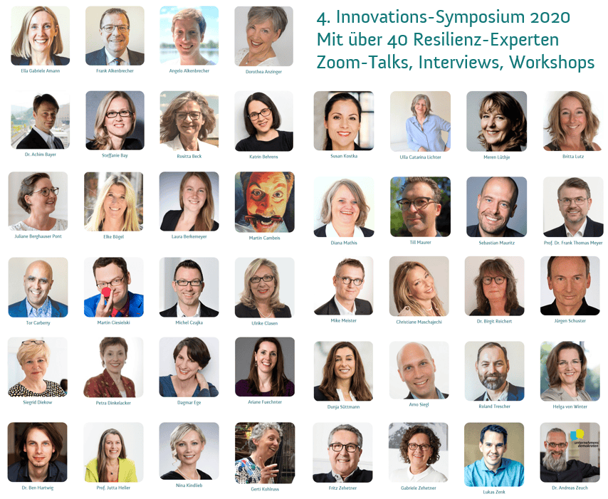 Das Team der Stiftung ResilienzForum, der ResilienzForum Akademie und der impro live! Akademie blickt erfolgreich auf das 4. Innovations-Symposium 2020 zurück. In diesem Jahr fand die Konferenz erstmals als Online-Veranstaltung statt und wurde von Mike Meister, einem erfahrenen Prozessbegleiter, Lösungsvermittler und Spezialisten für Open Space und Lernen in Großgruppen, moderiert.
